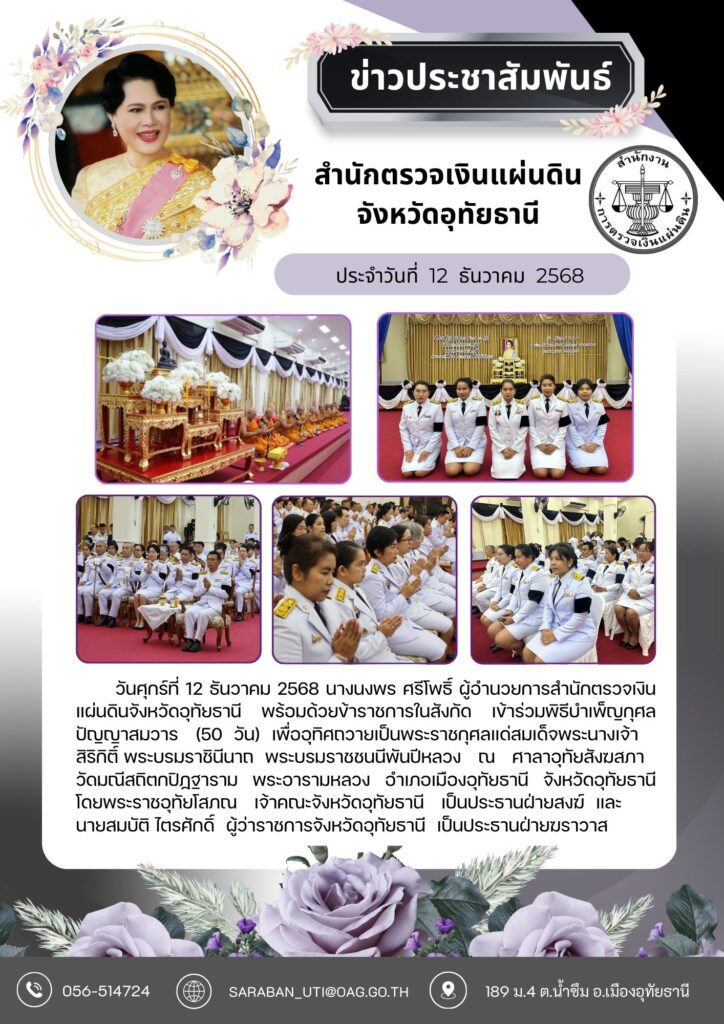 วันศุกร์ที่ 12 ธันวาคม 2568 นางนงพร ศรีโพธิ์ ผู้อำนวยการสำนักตรวจเงิน
