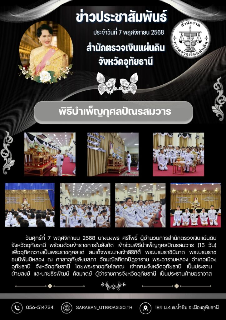 จังหวัดอุทัยธานี พร้อมด้วยข้าราชการในสังกัด เข้าร่วมพิธีบำเพ็ญกุศลปัณรสมวาร (15 วัน)