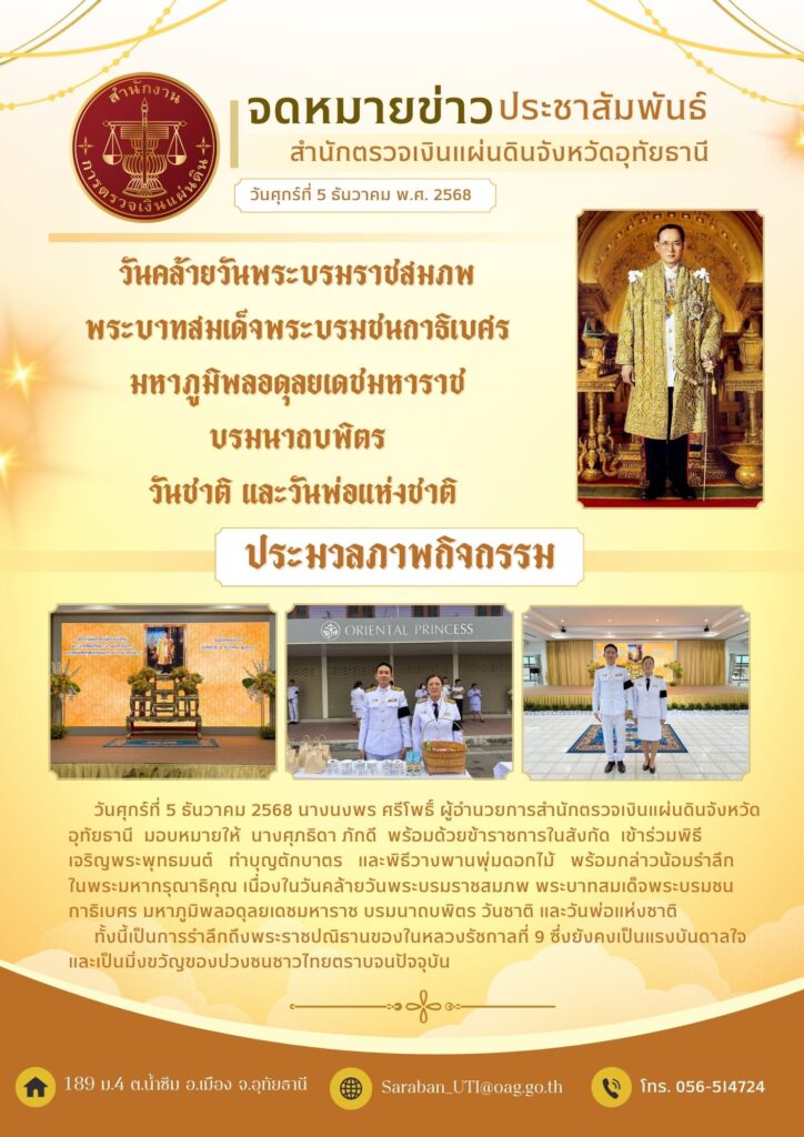 วันศุกร์ที่ 5 ธันวาคม 2568 นางนงพร ศรีโพธิ์ ผู้อำนวยการสำนักตรววจเงินแผ่นดินจังหวัด